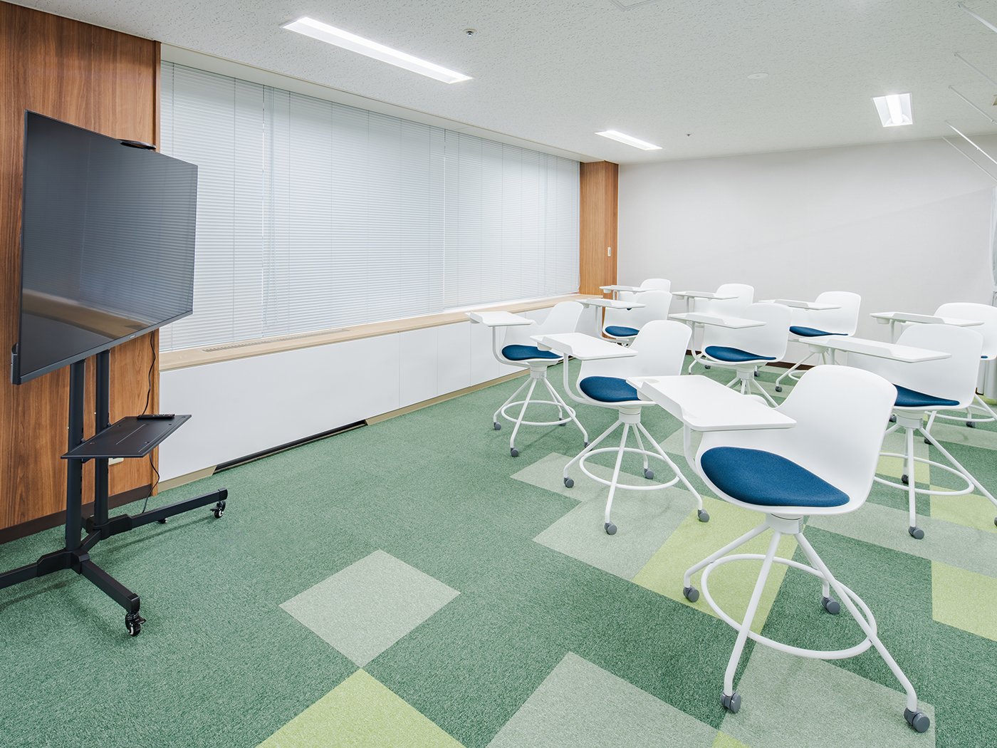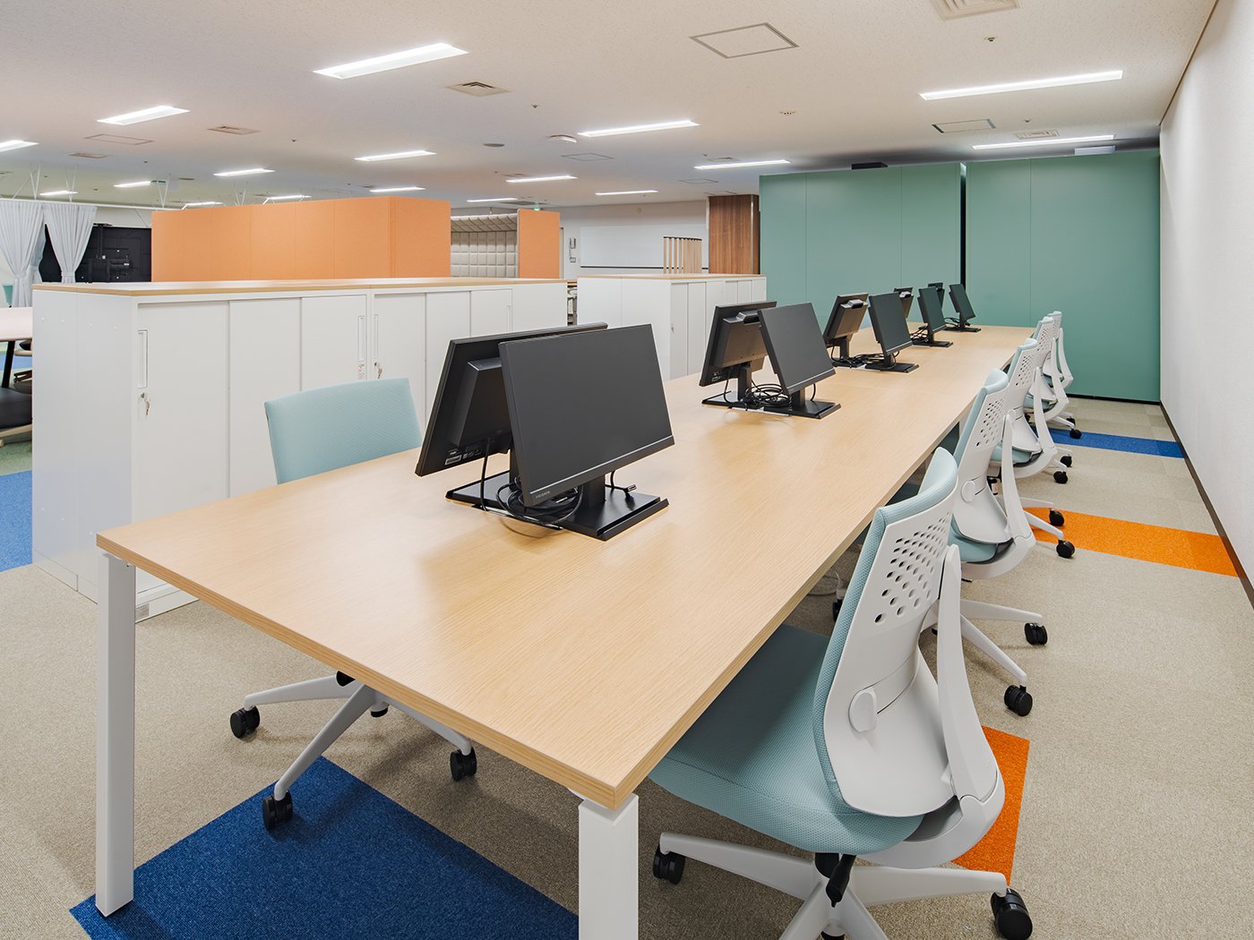 大型モニターを活用したセミナー形式の会議や、コミュニケーションの中心となるオープンな場として設計されたエリアです。