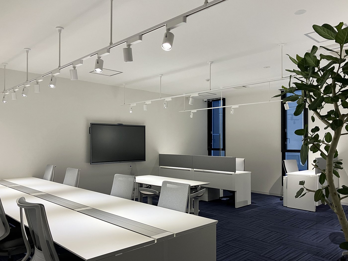 コーポレートカラーであるブルーと、先進的でモダンなイメージを融合させ、お客様をお迎えする空間を演出しました。