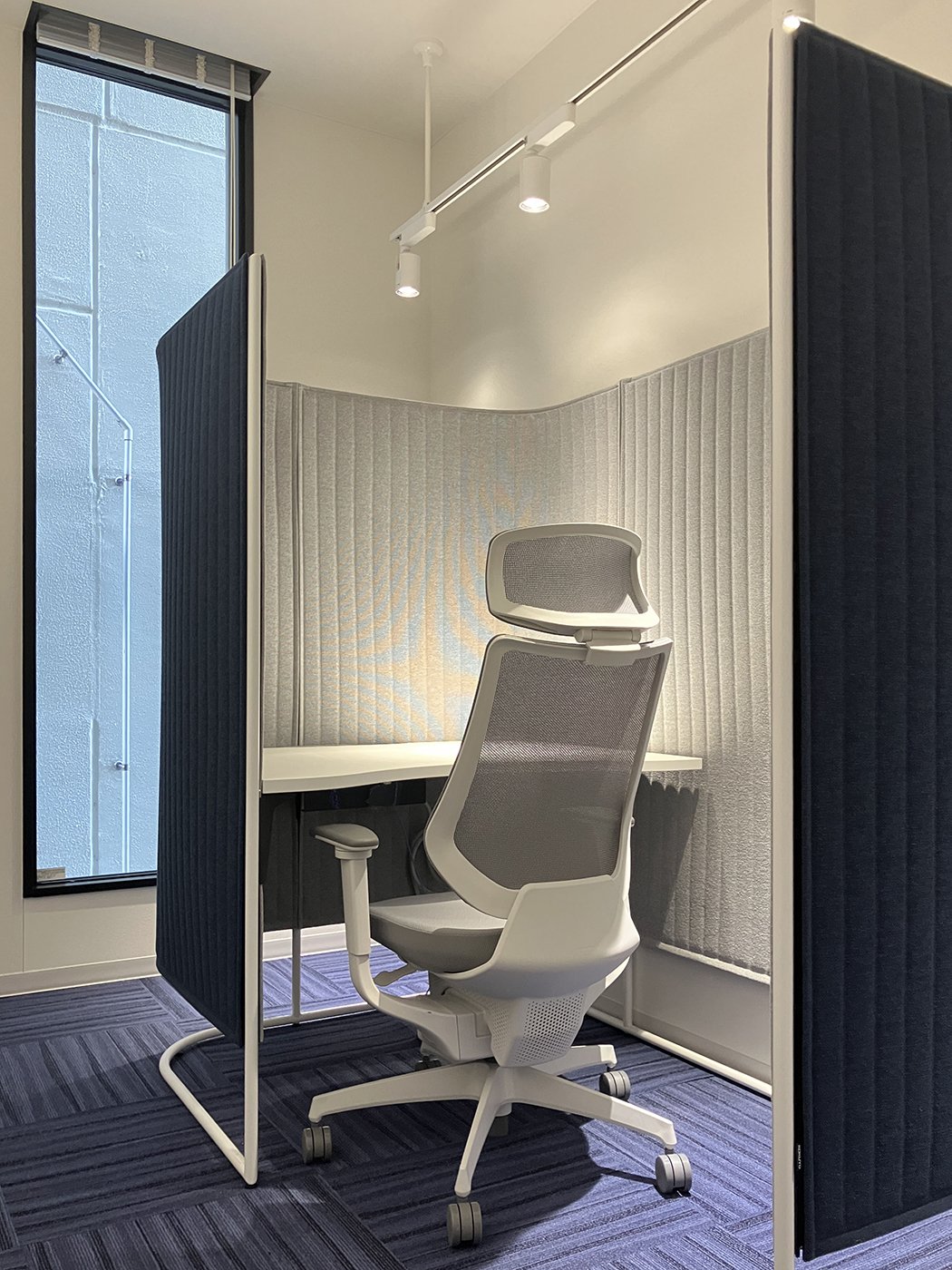 オンライン会議や高い集中力が求められる業務に最適な個別ブースを設置。