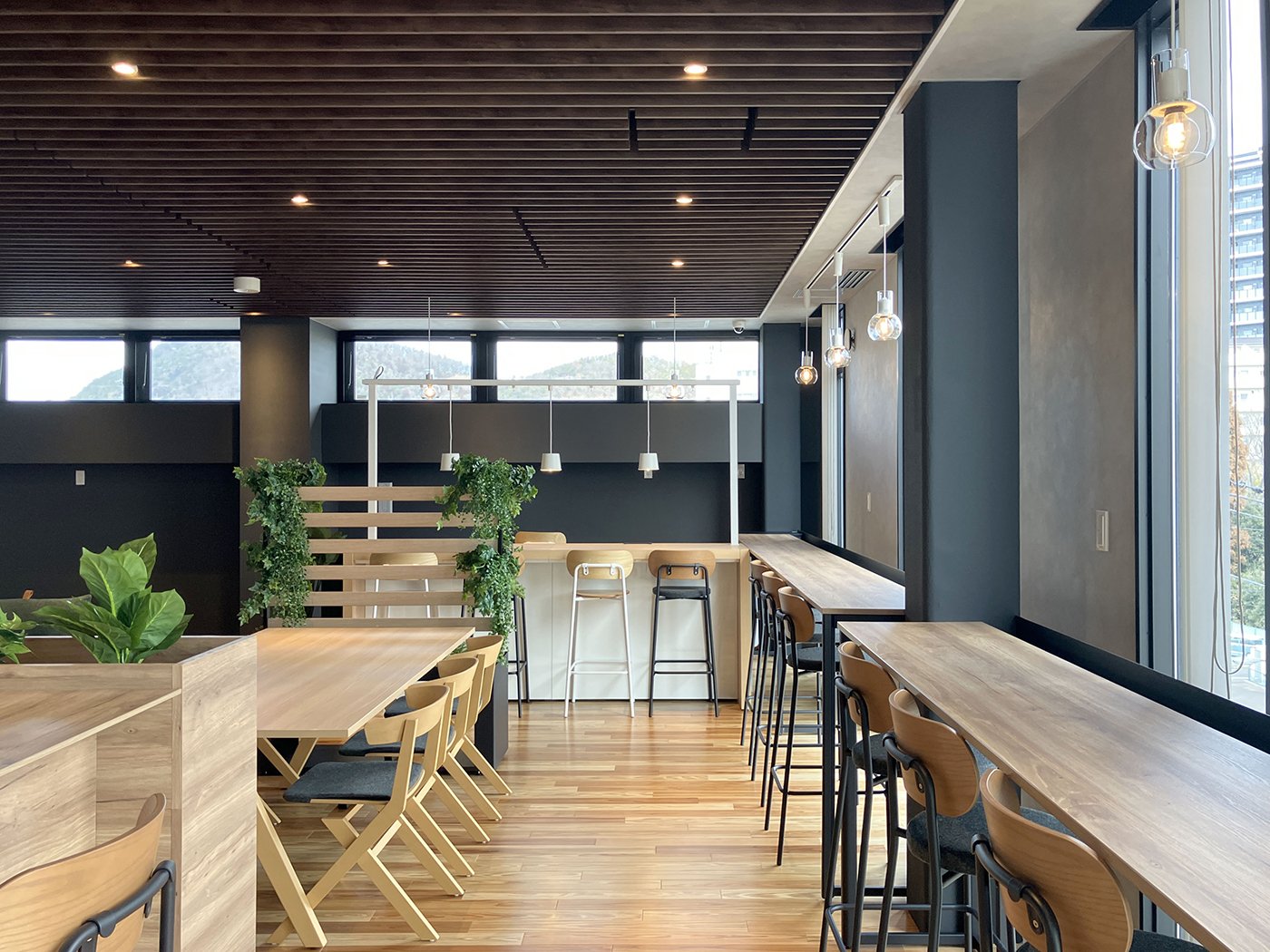 床には温かみのある福島県産の杉材を使用し、ソファー席やカウンター席など、多様なスタイルの家具を配置しました。