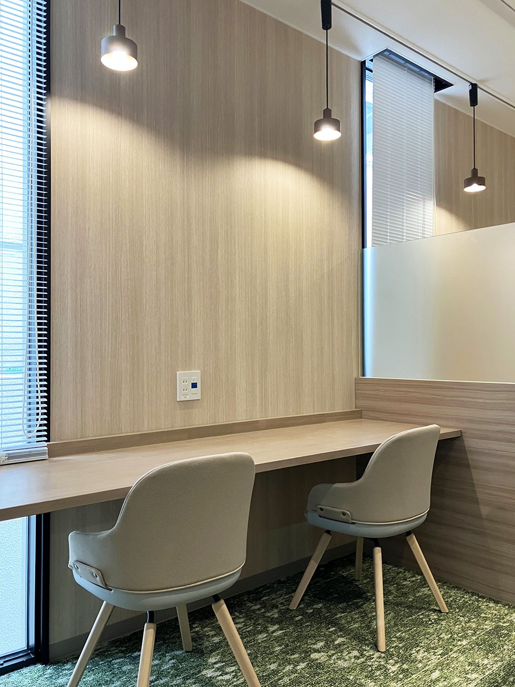 自然光を取り入れた明るく落ち着いた設えが、仕事の効率アップと心身のリフレッシュを促します。