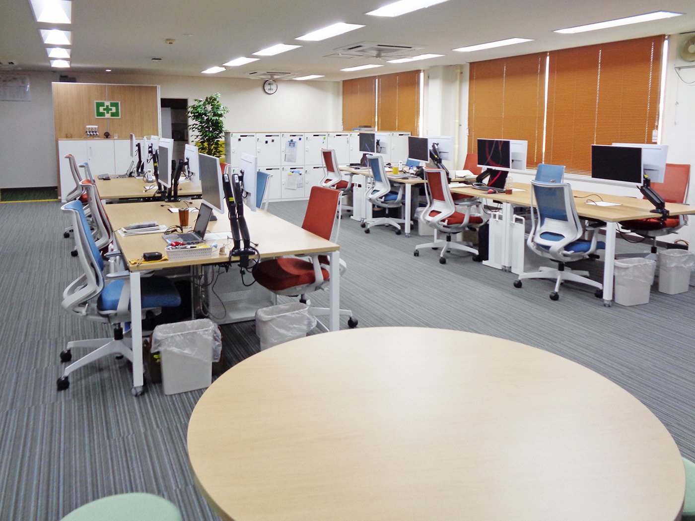 フリーアドレス化に伴うオフィスリニューアル。オフィス空間全体の設計・施工を担当しました。