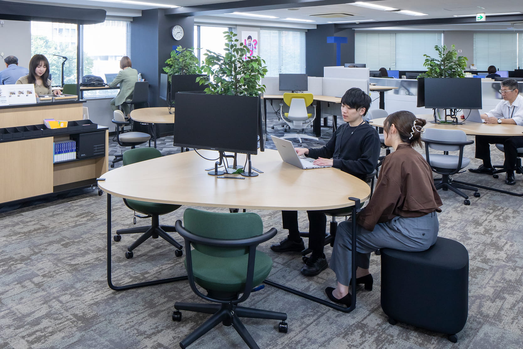 コンパクトながらも機能的なオフィス空間の中で、ABWをはじめとした新しい働き方に挑戦。自律的に働きながらも、社内外の人々と協働・交流することで、知識やスキルが「たわわに稔る稲穂」のように豊かに育つ場を目指しています。
